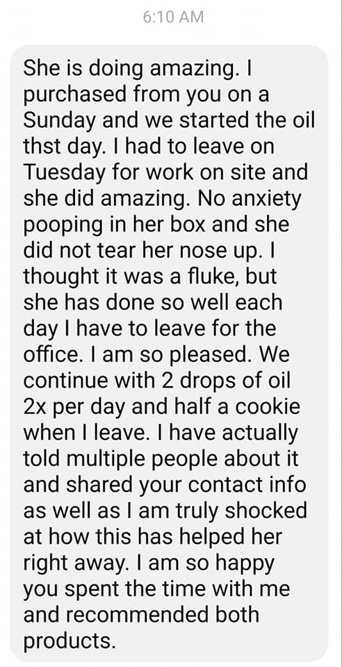 This makes my heart so happy!! Jennifer came to me because her dachshund was having some separation anxiety once mom went back to work after COVID lockdowns. I deal with this almost daily! Dogs are social animals and so many did not get the proper socialization and/or are in distress about now being home alone. I started this pup on a pet CBD oil and treat regimen and it was life changing for this family! If your fur baby needs help with anxiety, I would love to help!!